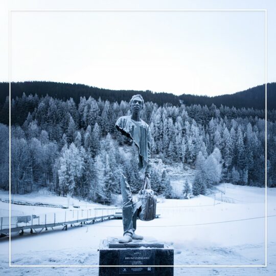 L’œuvre de Bruno Catalano allie virtuosité technique et regard profondément humain. Ses sculptures, traversées par le vide, dialoguent avec leur environnement et trouvent un écho saisissant dans la majesté des Alpes. Entre les différents villages, ses Voyageurs vous conduisent vers les ‘Arbres de Vie’ d’Andrea Roggi, en parfaite résonance avec les reliefs enneigés. Puissants et sensibles, ils rappellent qu’ensemble, nous sommes les architectes d’un monde où l’empathie et l’amour façonnent l’avenir.